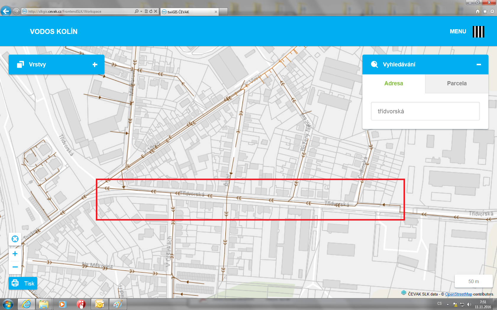 Situace 1 | Rekonstrukce kanalizační stoky v ulici Třídvorská – zpracování projektové dokumentace | zadávací dokumentace |